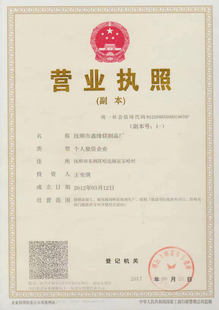 Welcome to Fushun Xinyuan Magnesium Products Factory website!